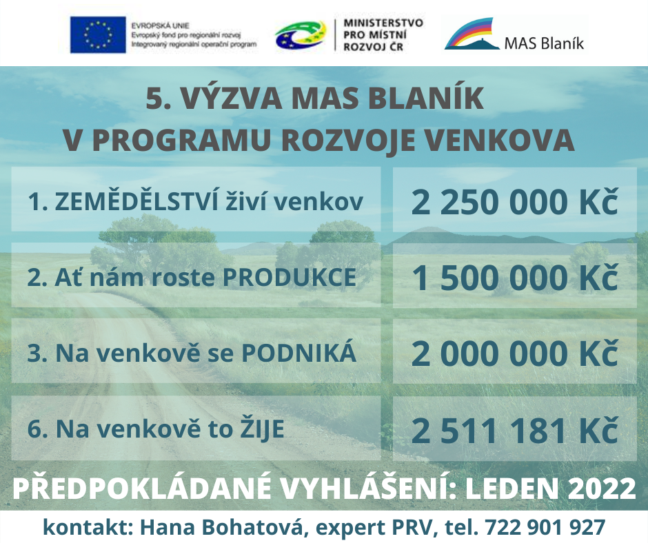 MAS Blaník, z. s. připravuje 5. výzvu v Programu rozvoje venkova
