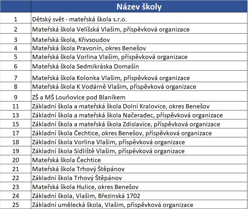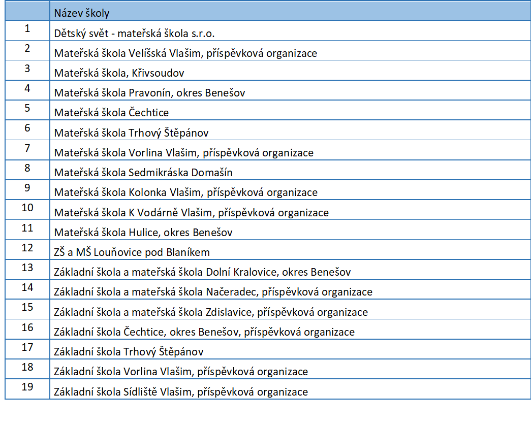 Místní akční plán pro oblast školství a vzdělávání území ORP Vlašim IV je realizován od 1. 12. 2023 do 31. 12. 2025