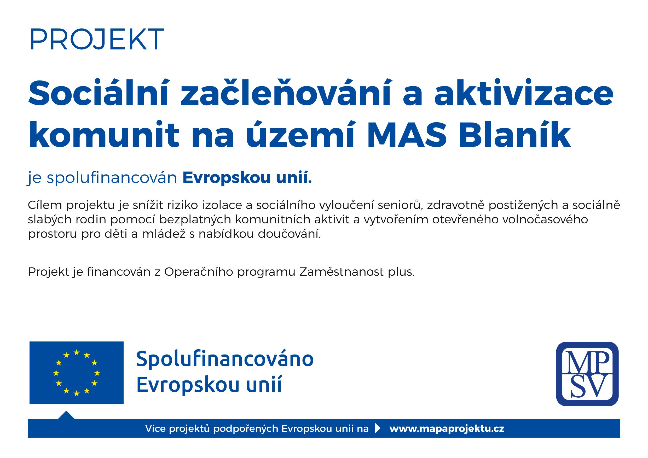 Oficiální název projektu: Sociální začleňování a aktivizace komunit na území MAS Blaník