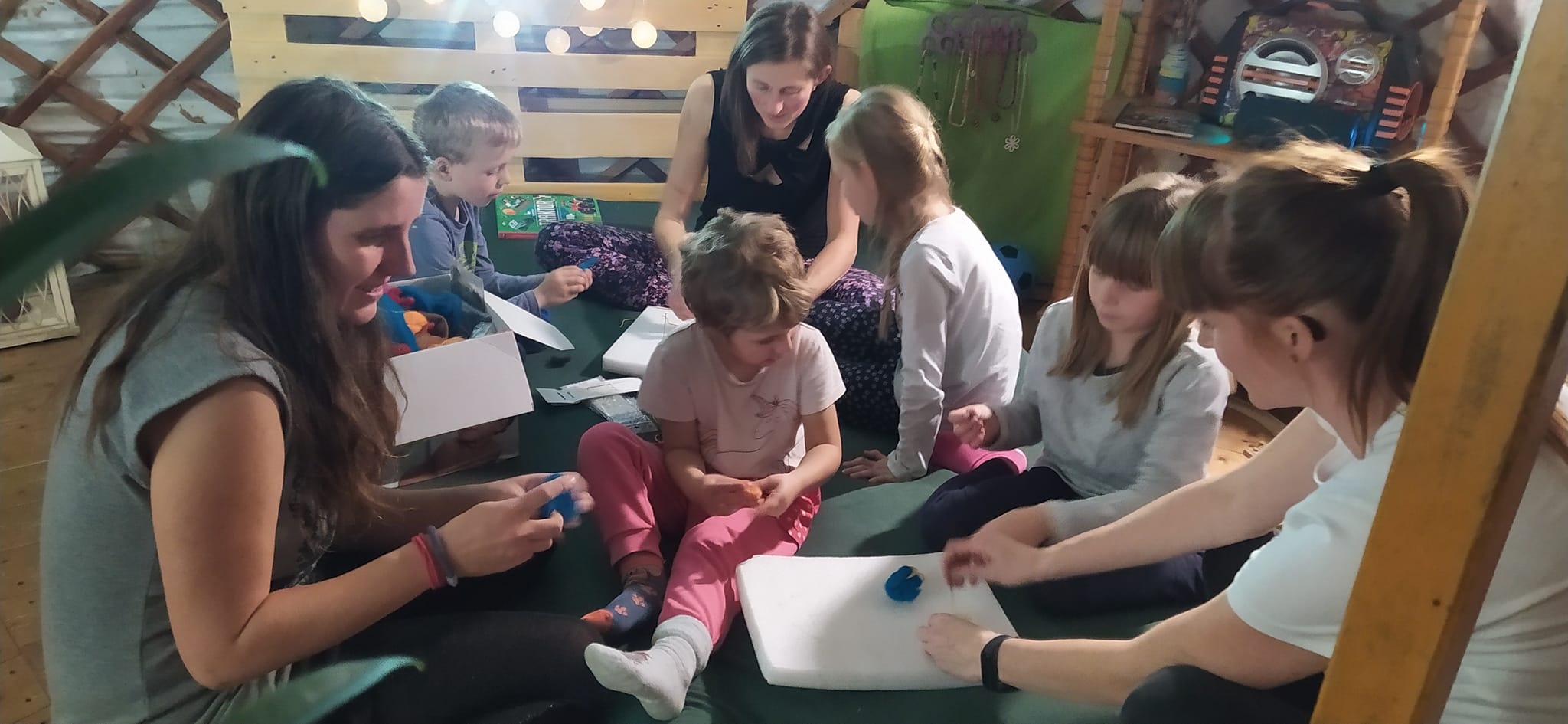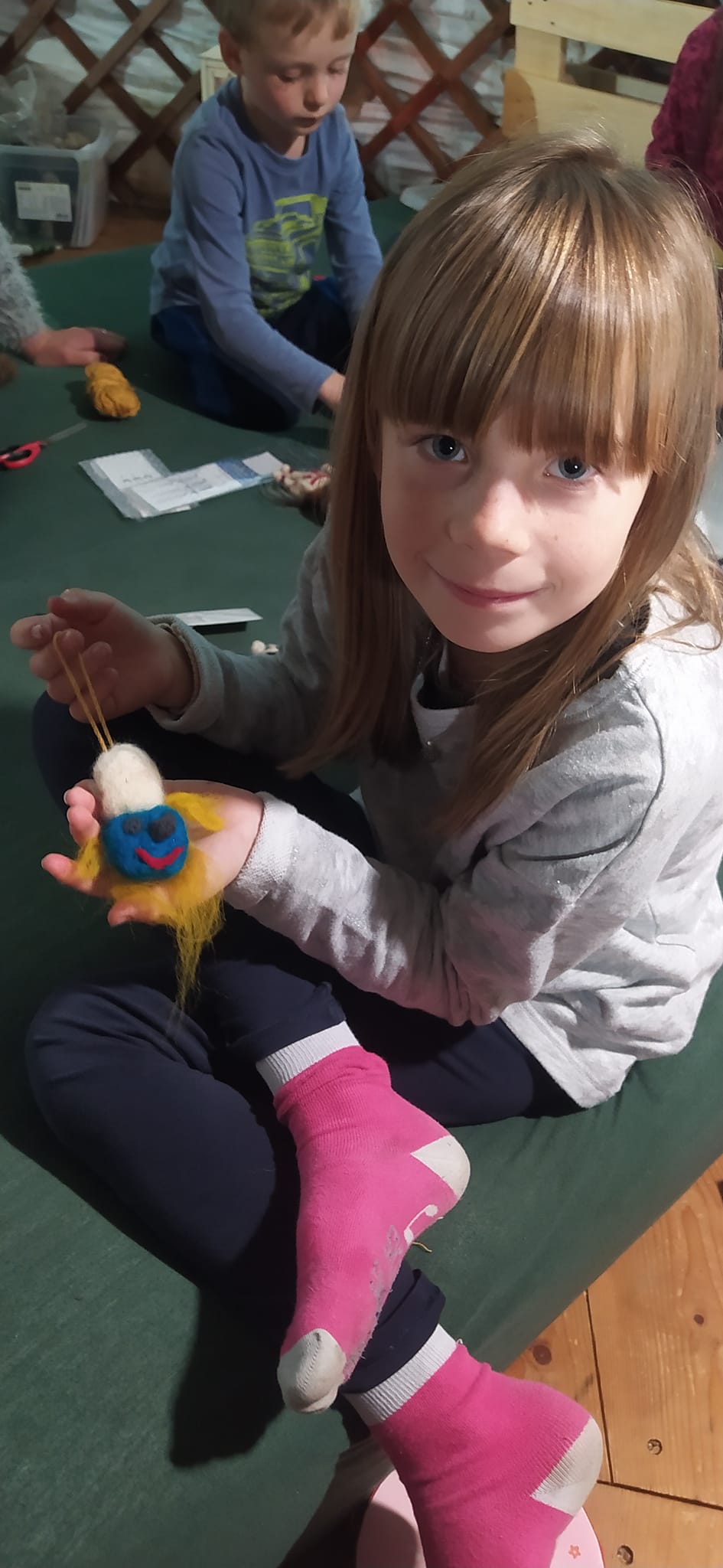• Od ovečky k vlně: Povídaly si společně o životě oveček a čím je zajímavé plemeno ouvessantské ovce, v zázemí jurty se seznámily s procesem čištění vlny, lanolinem a uplstily si ovečku nebo jinou postavičku.