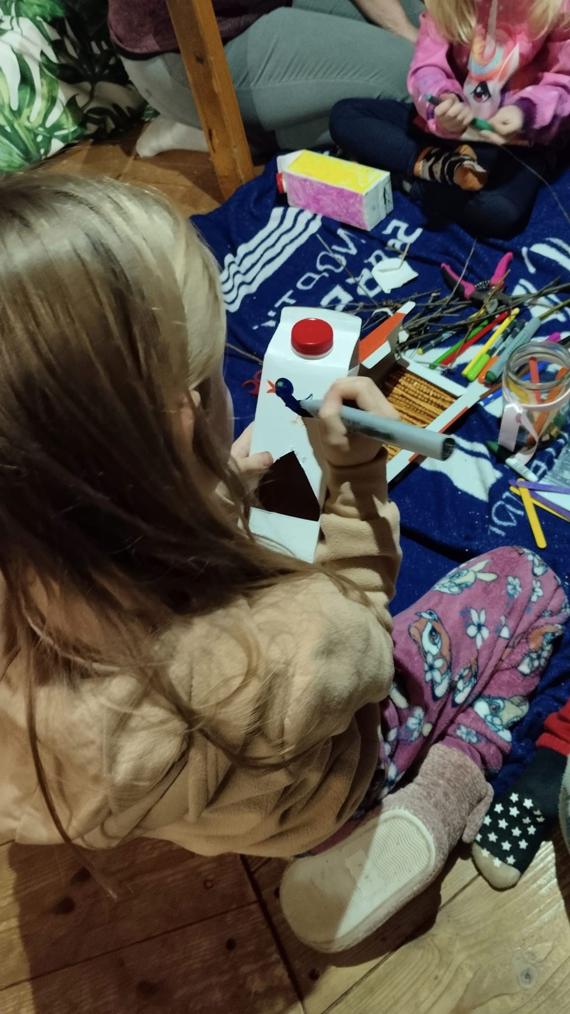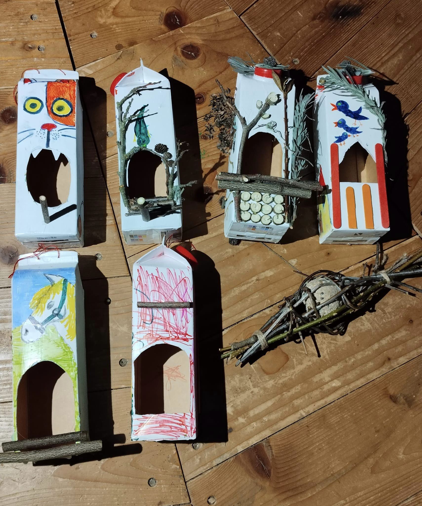 • Jak se žije ptáčkům v zimě: Povídaly si o tom, proč se ptáci stěhují, jak vypadá stopa ptáka a vyráběly různá krmítka z proutí a lahví od mléka.