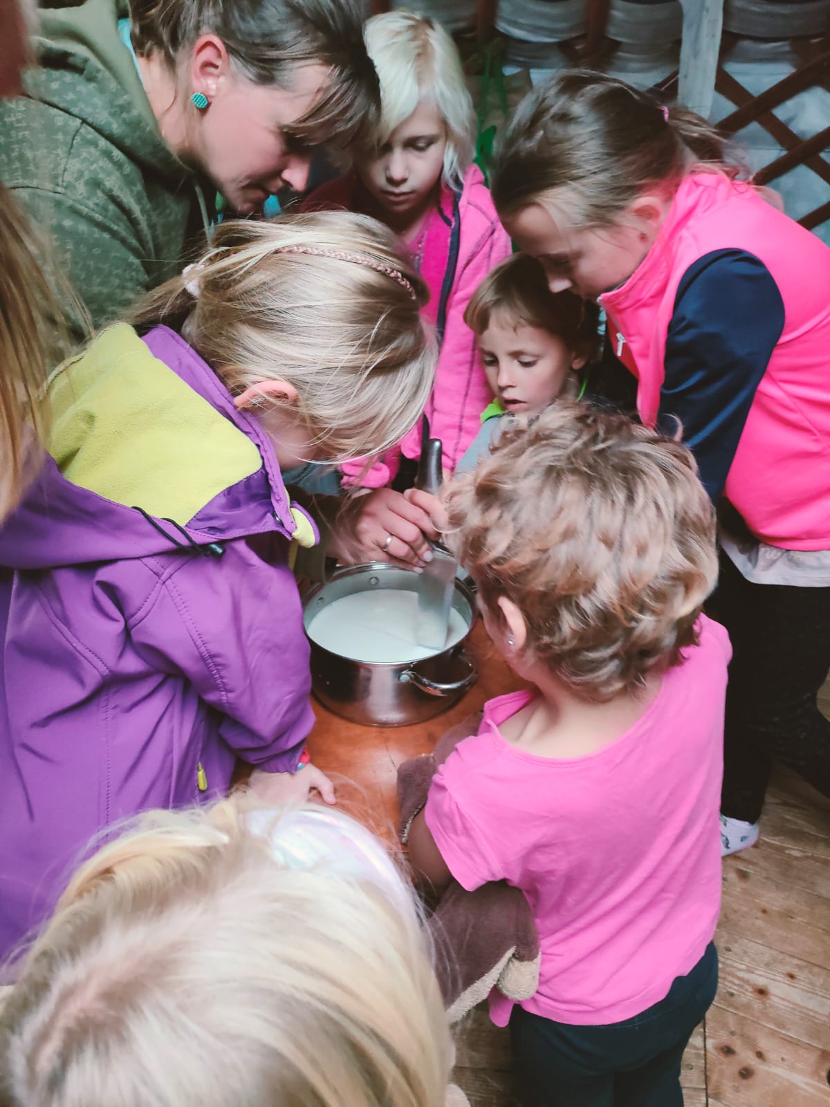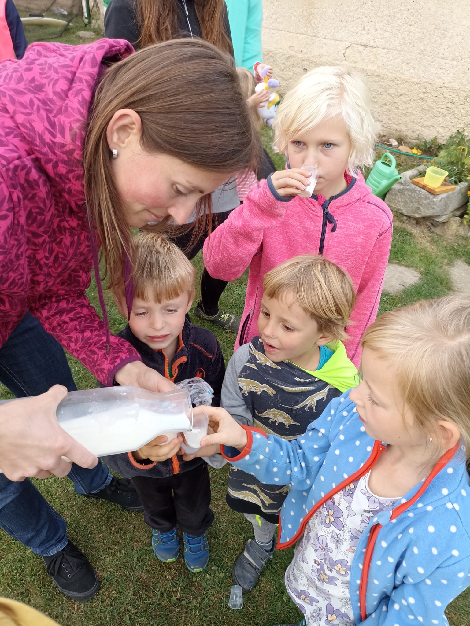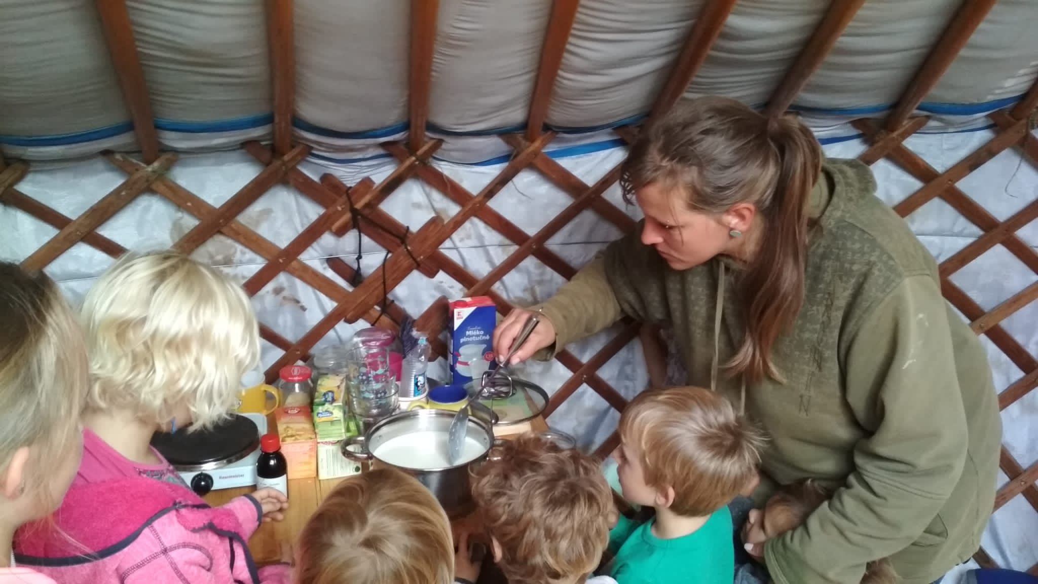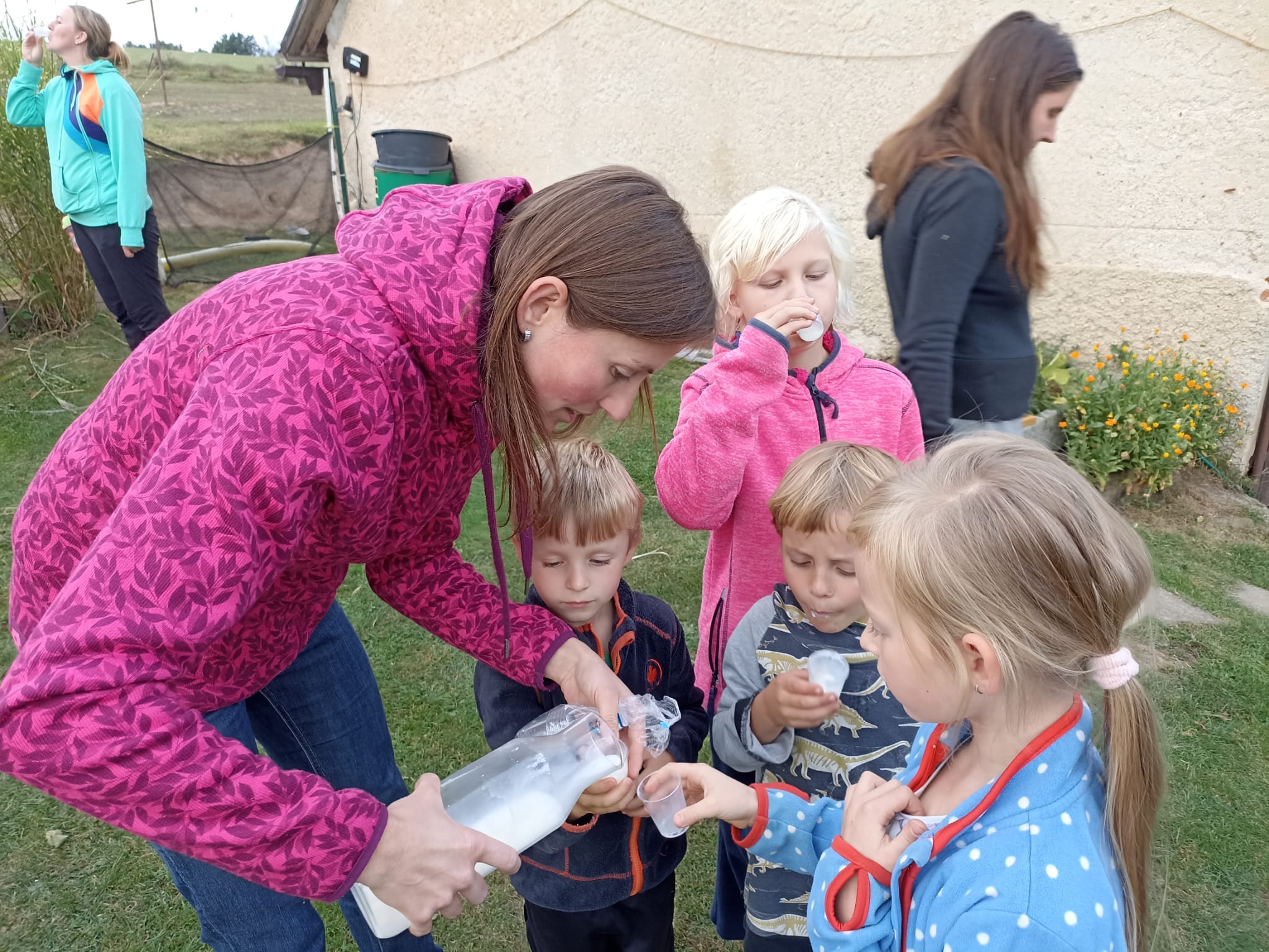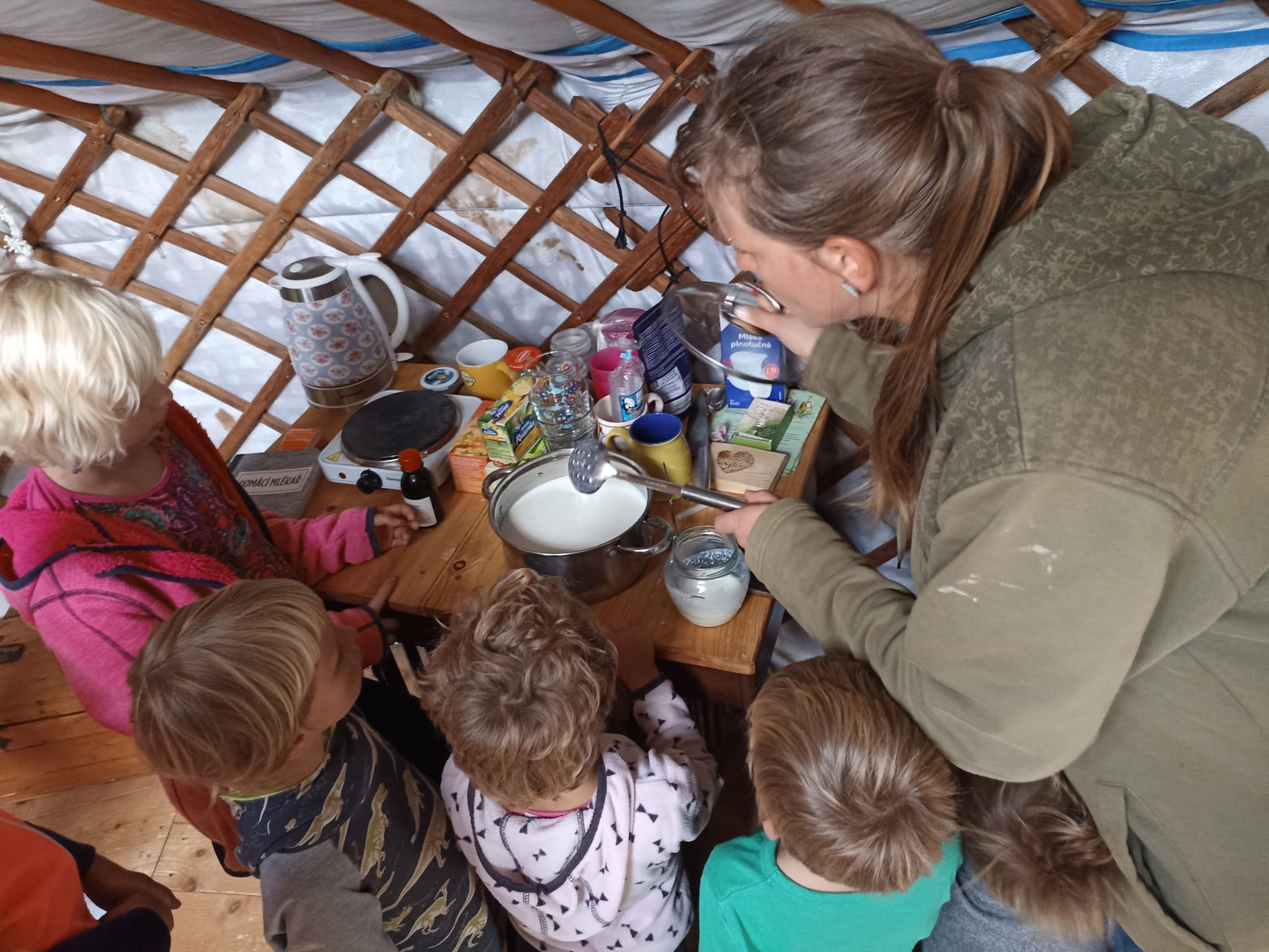 • Naše kráva, mléko dává: Ochutnávaly mléko a poznávaly rozdíl mezi kravským a kozím mlékem, z vlastnoručně nadojeného mléka si v zázemí jurty vyrobily čerstvý sýr.