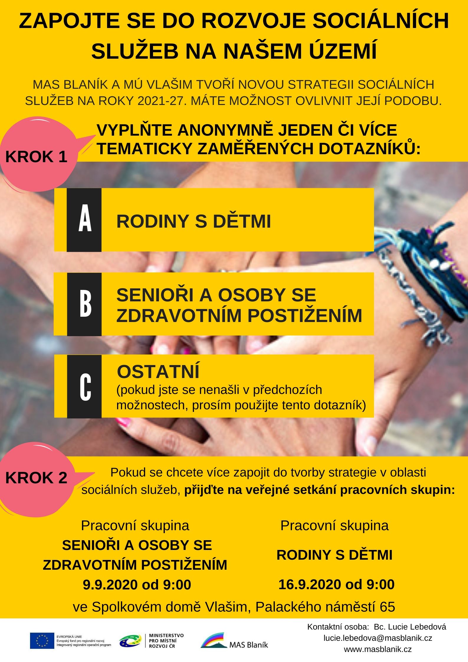 Sdílením svých potřeb a zkušeností můžete ovlivnit rozvoj sociálních služeb na území MAS Blaník, které zahrnuje 44 obcí okolo hory Blaník. Více o MAS Blaník na: https://www.masblanik.cz/